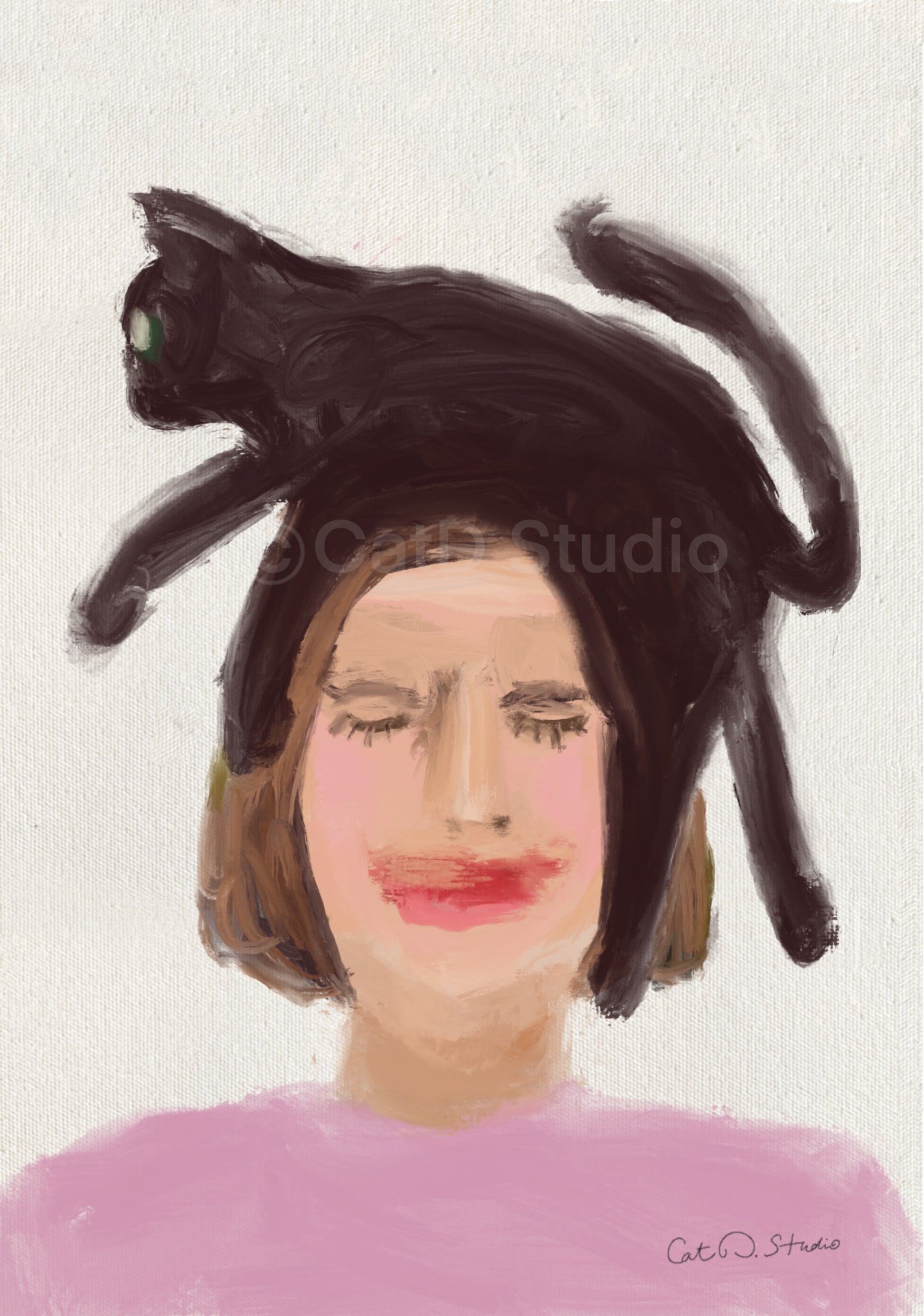 Every woman needs their own personal kitty, a warm and slinky co-conspirator, atop your mind. This print of an original Cat D Studio digital painting is part of a series of portraits of symbiotic friendships between human and small animal.